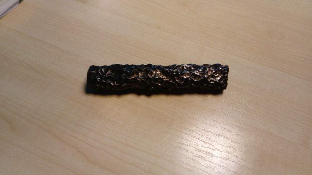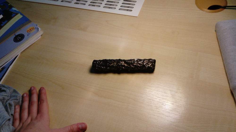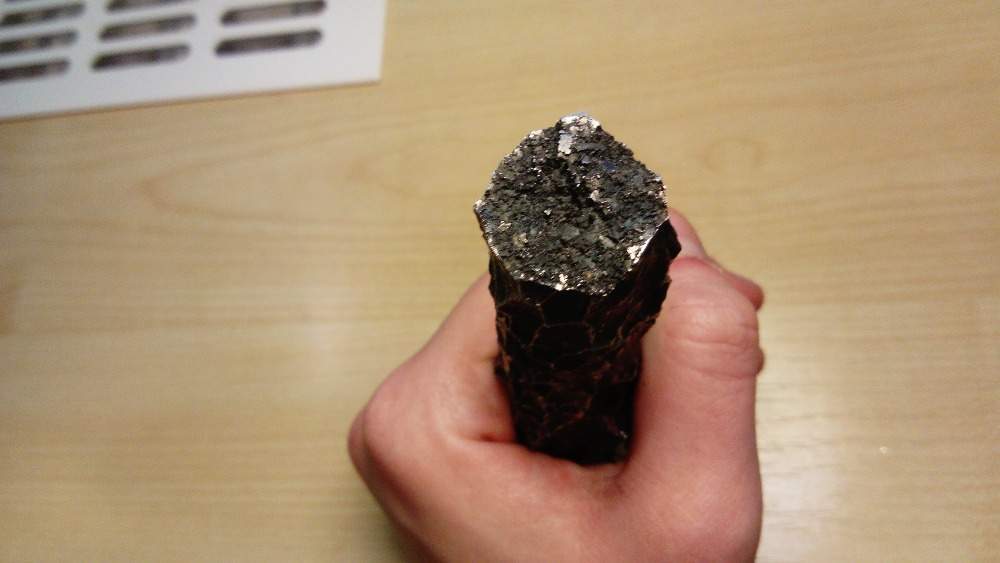 nevíte si někdo rady, co to je? Je to asi nalezeno cca před 40 lety na poli. Evidentně to prošlo vesmírem. Váha 556g, průměr cca 25mm a délka 160mm, velmi tvrdé uříznutí flexou - zabralo cca 10 min a 2 kotoučky pryč...Vzorek poslán na analýzu kovu bez odezvy... Vytlačí to cca 52ml vody, hustota 11g/cm3. Byl to pravděpodobně původně 6-hran...