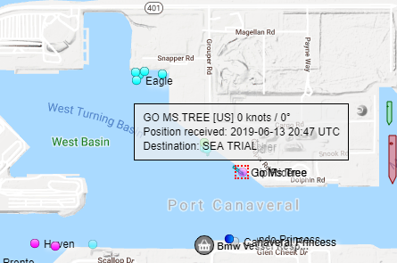Na lodi chybí jeho jméno na přídi a plavidlo se v trackingu ukazuje pod novým názvem "GO Ms.Tree"