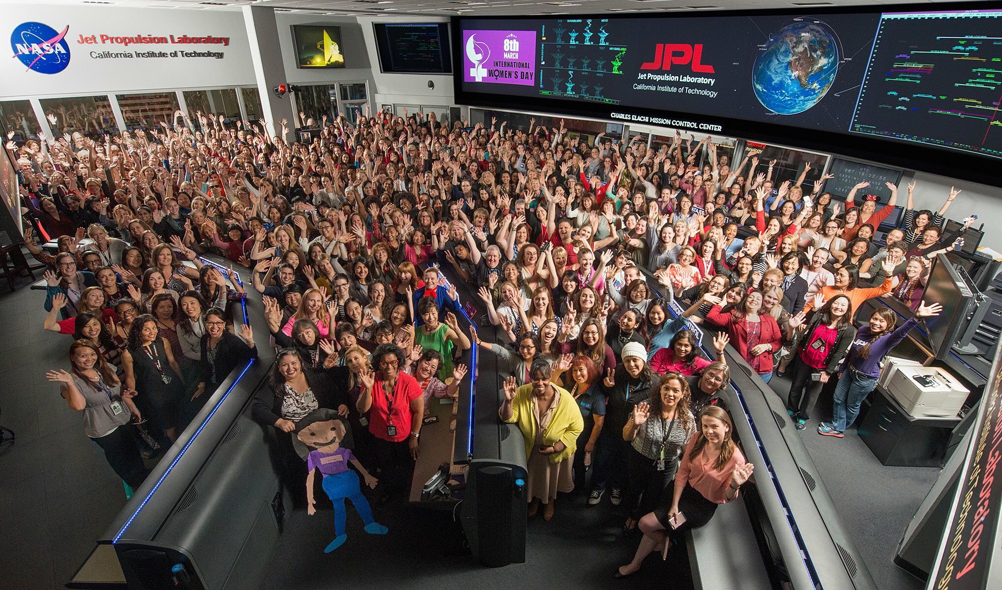 Btw. v JPL vůbec pracuje hodně žen. Aktuální fotka z 9.3.2017 ... a to se tam údajně další 100 nevešla a ještě další, co z různých důvodů nemohly opustit svoje pracoviště.