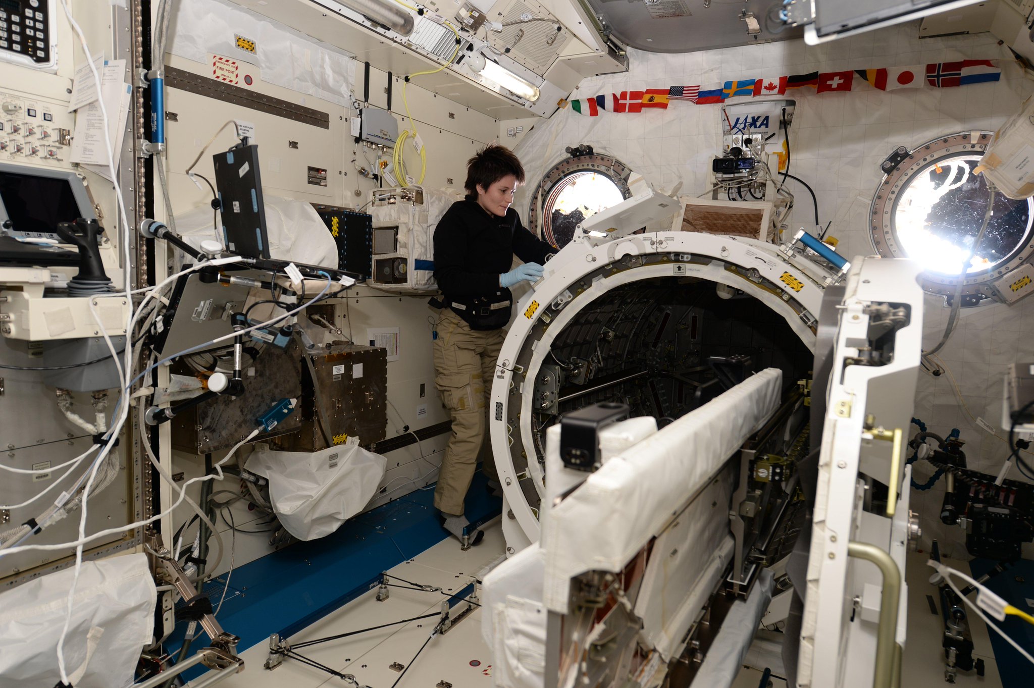 "Použitím japonské přechodové komory a jejího posuvného stolu můžeme přesunout malé satelity ven ze stanice."