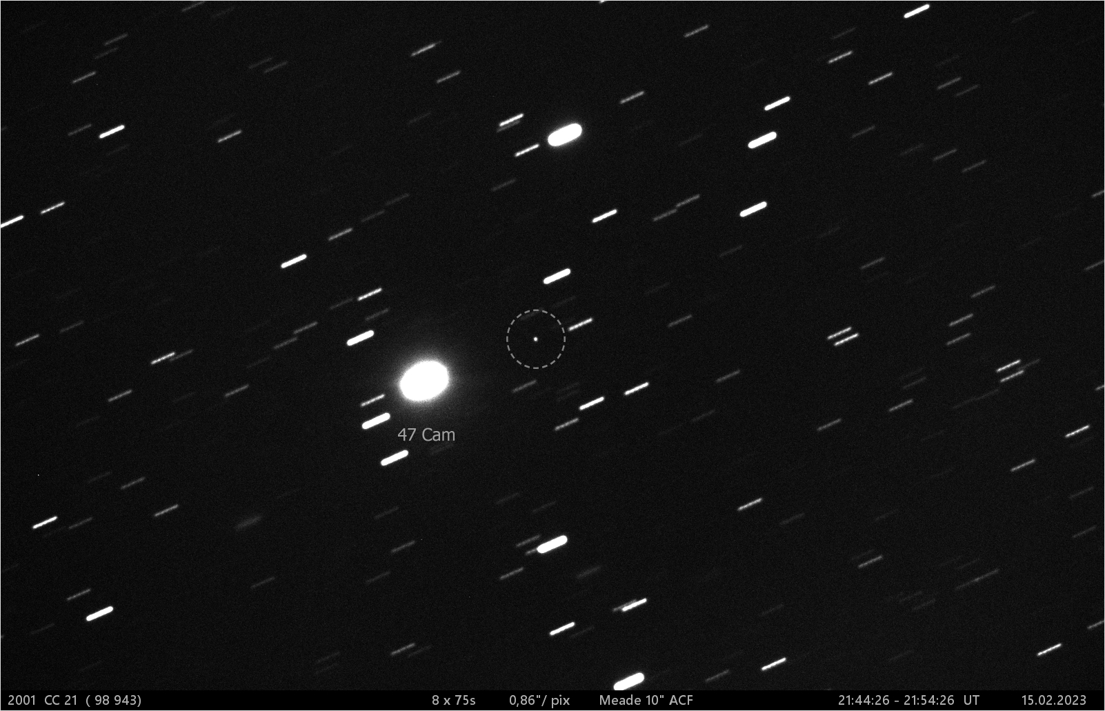 slappy píše: 28.1.2023 20:32 Asteroid 2001 CC21 má nyní výhodné (ehm, nejlépe 16 mag) pozorovací podmínky.