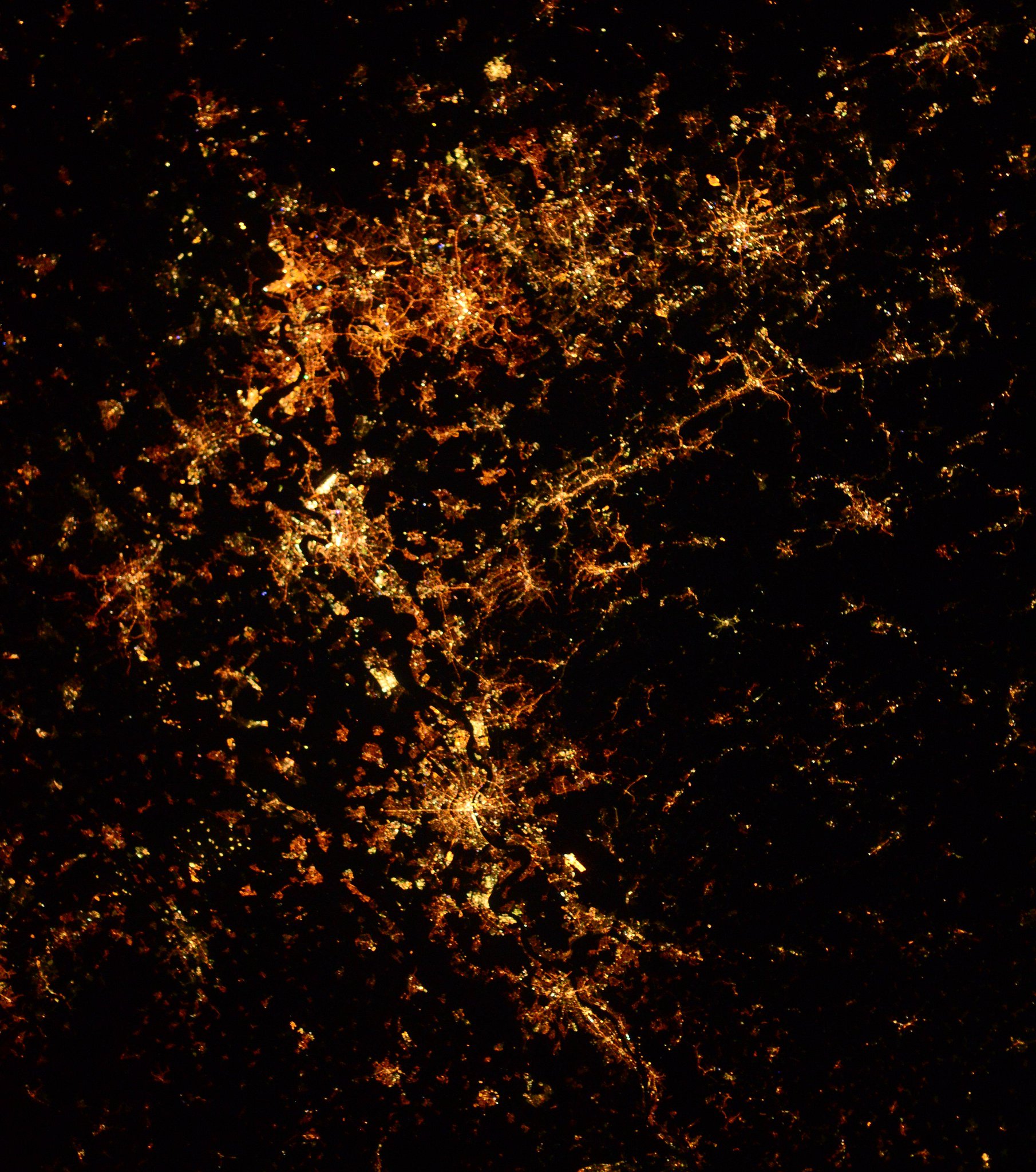 "Zatímco čekáme na Dragon, prohlížím si fotky Itálie z krásného nočního přeletu před několika dny."