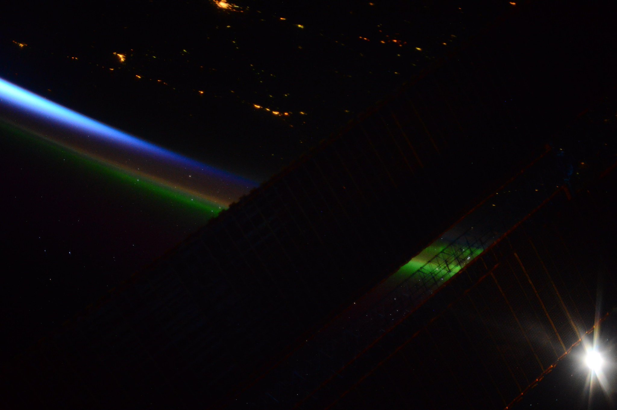 "Dragon včera těsně před připojením k ISS. Teď už je poklop otevřen a dnes a zítra budeme vykládat urgentní vědecké experimenty!"