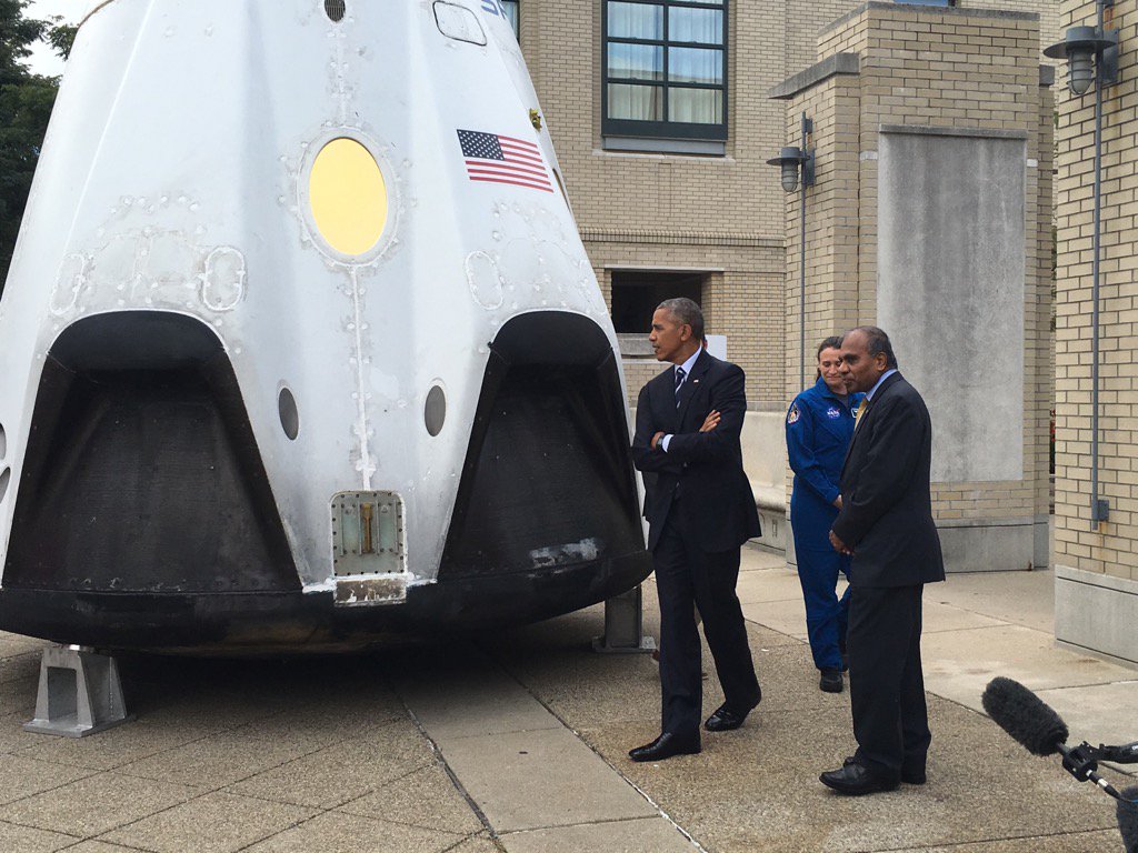 POTUS okukuje Dragona s hlaskou "Uz tam skoro chcete vlezt a odstartovat, ze ano ? / You almost want to get in and take off, don't you?"