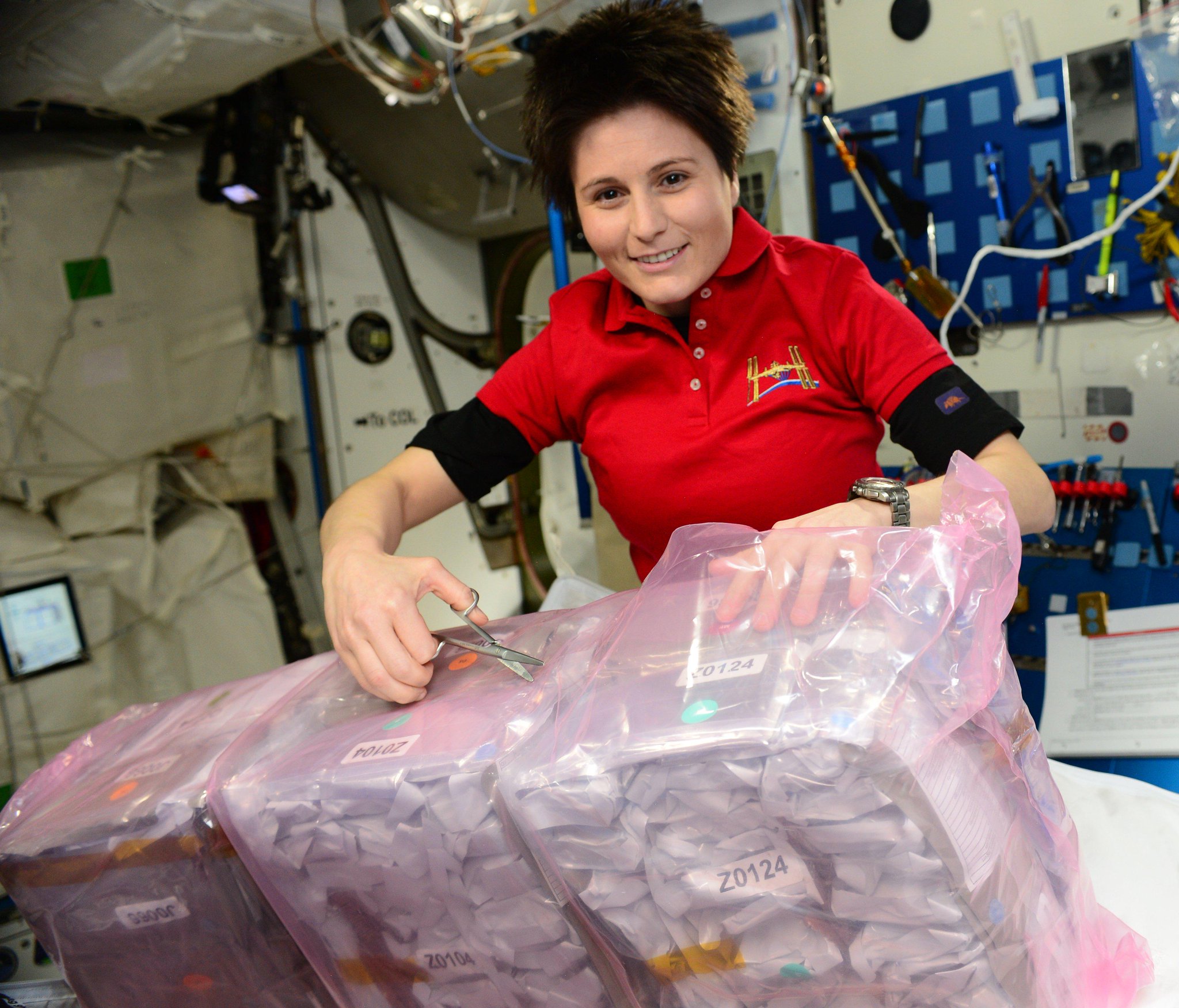 "Kromě vědeckých experimentů Dragon přivezl také mnoho zásob. Toto jsou balíčky s jídlem roztříděné podle kategorií."