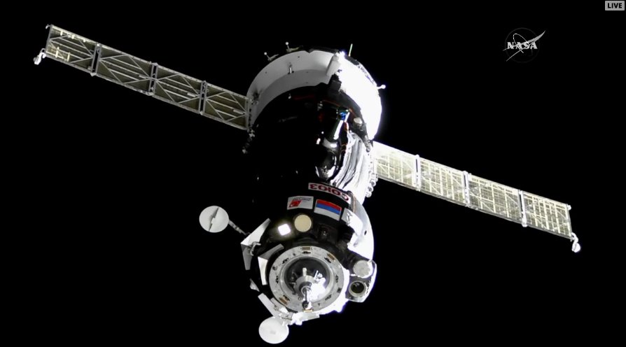 Záznam dokovania Sojuzu MS-5 k ISS: