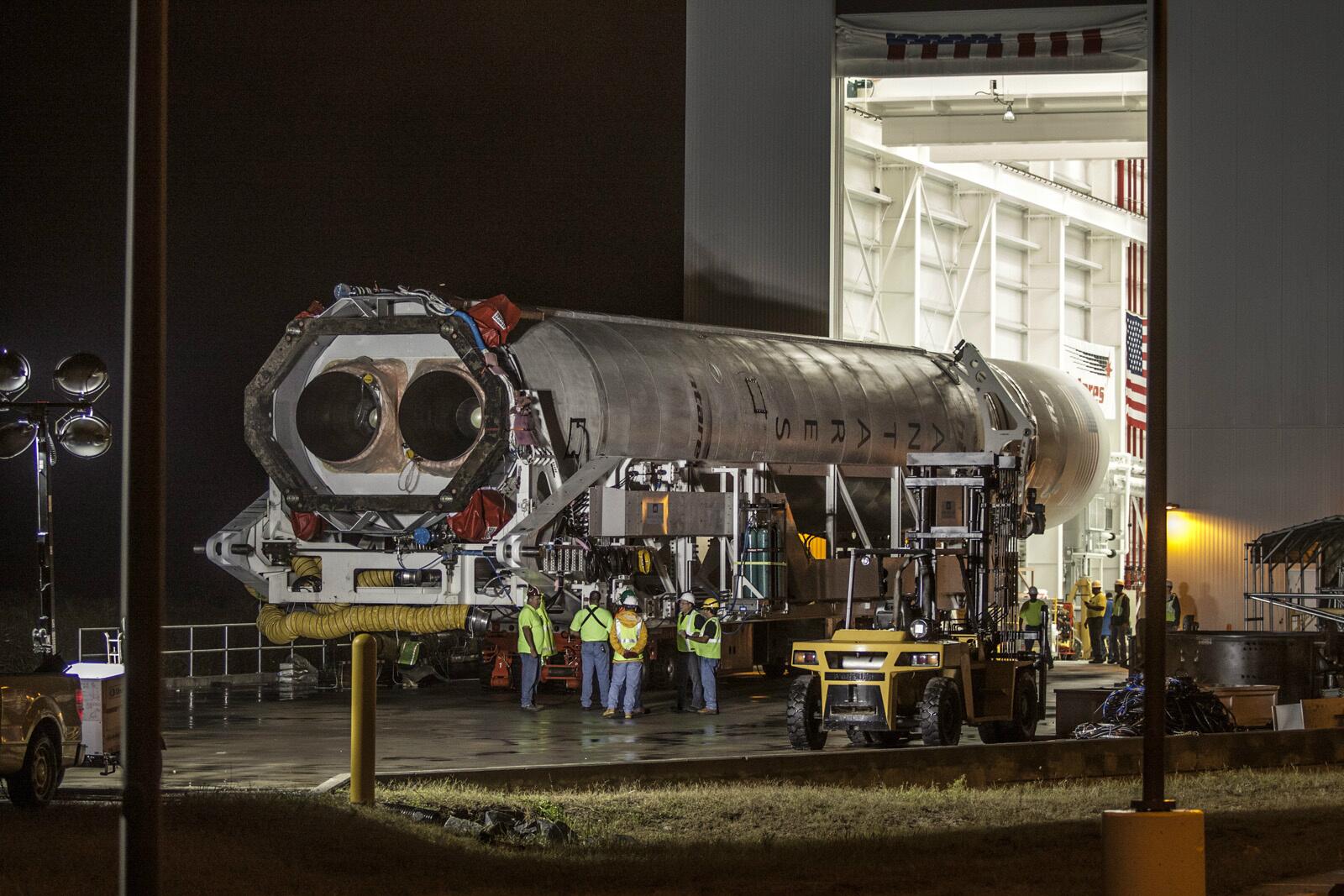 A tady už máme krasavce jménem Antares na odpalovací rampě.